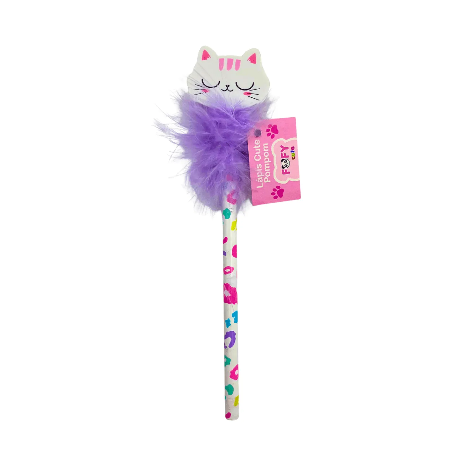 O Lápis Cute Pompom com Borracha da Fofy vem com um pompom de pluminhas lilás super macio e uma borracha em formato de gatinho dorminhoco que é puro charme! 😻