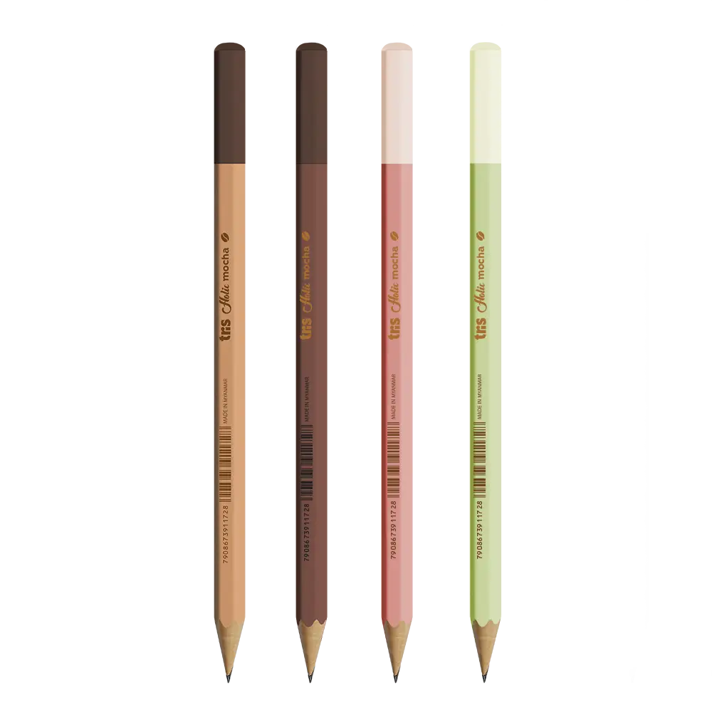 A Linha Holic Coffee Shop da Tris traz lápis grafite HB Nº 2 com corpo de madeira, acabamento impecável e design inspirado nos sabores mais amados do coffee shop: Caramelo (cappuccino), Marrom (espresso), Rosa (morango latte) e Verde (matchá coffee latte). 💖