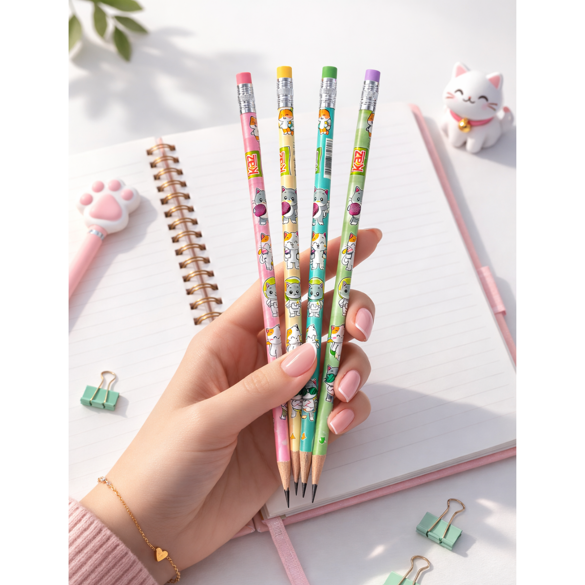 Ok, mas esse lápis é simplesmente o auge da fofura escolar! 🐱✨
